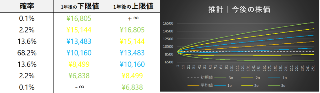 株価の現在値からどの程度の値幅で推移することが考えられるのか、を見ていきましょう。
